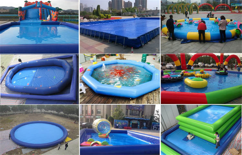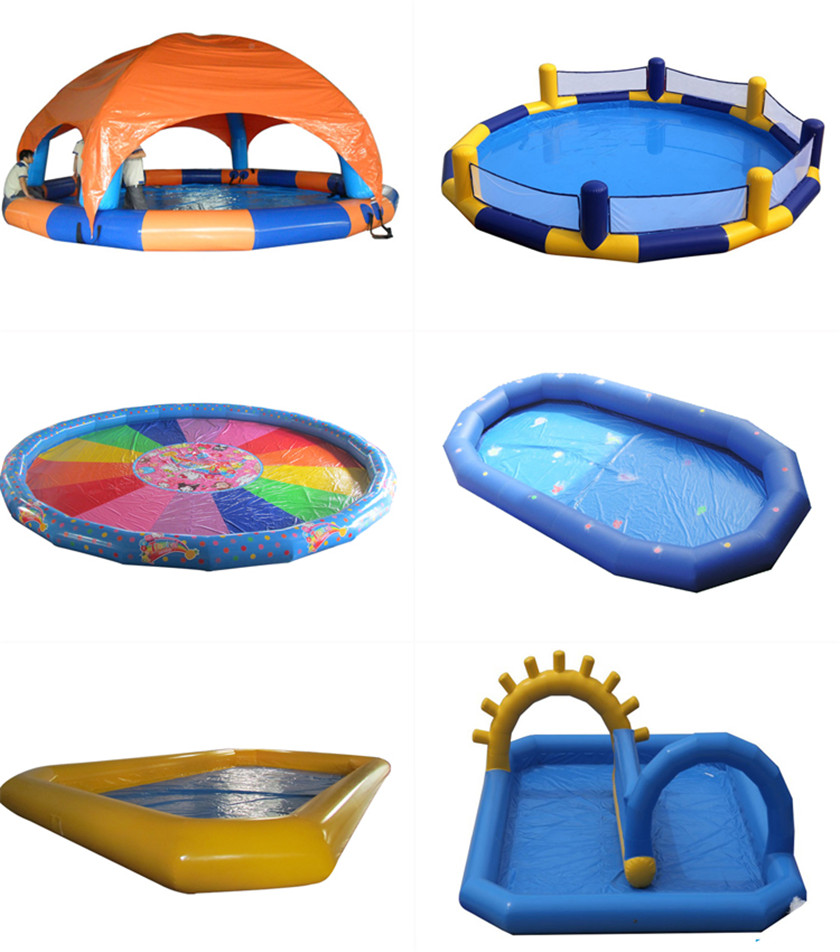 1. Use best 0.6mm or 0.9mm 1000D high intensity PVC tarpaulin to make the pools.2. Sealed unit, no need constantly inflate this pool with blowers. When it is fully inflated and the pressure is enough, entrance and exit was closed by valve, it will be ready for usage.